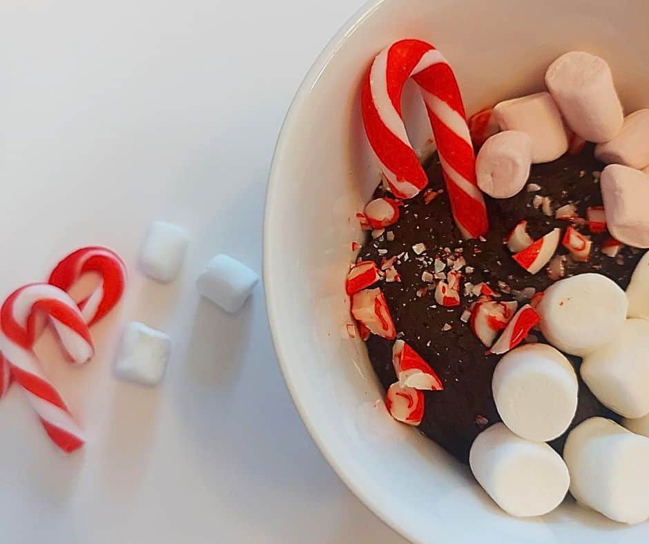 Okay, let’s make this hot cocoa peppermint mug cake!