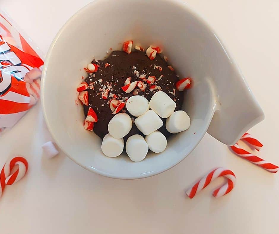 - Top with mini marshmallows and a sprinkle of crushed candy cane.